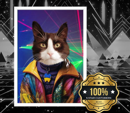 90s 80s Funny Pet Portrait from Photo, Retro Dog Illustration, Unique School Custom Cat Drawing, Personalized framed poster print, XMAS gift
